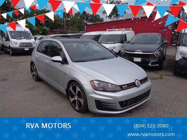 Just arrived 2015 Volkswagen Golf GTI with only 97K miles. This GTI drives great, everything works. A/C blows cold. Nicely loaded: panoramic sunroof, leather interior, GTI shifters, heated seats, bluetooth, back up camera, subwoofer and much more. Autocheck report shows no accidents and I am selling this GTI below its market value, because it comes with rebuilt title after an insurance loss. Financing and warranty are available. Stop by RVA Motors for a test drive and thank you for your business.